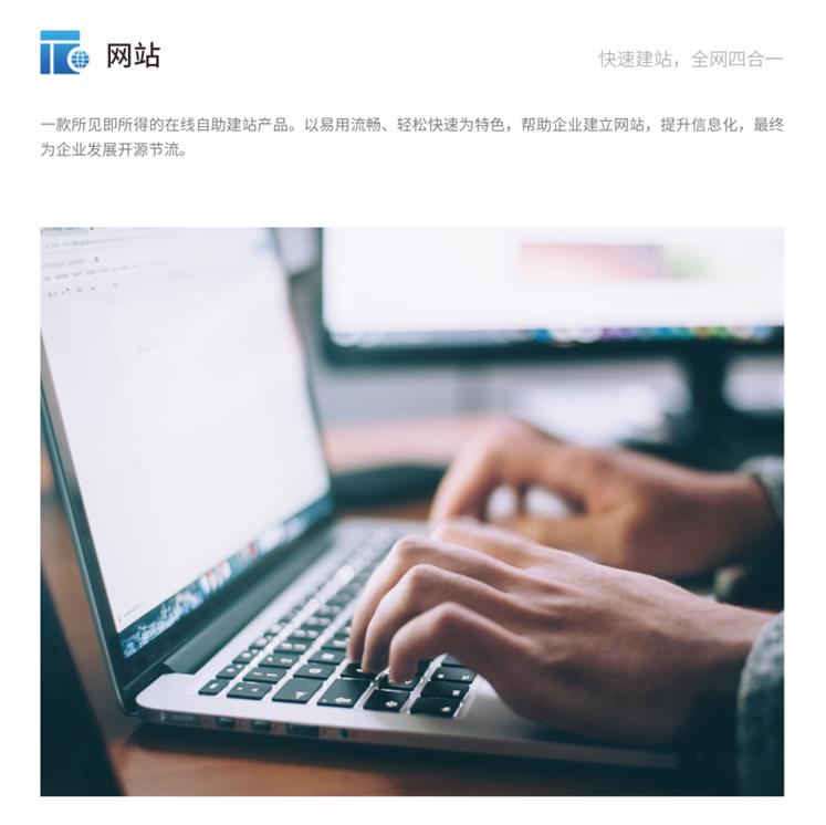 一款所见即所得的在线自助建站产品。以易用流畅、轻松快速为特色,帮助葡萄酒生产企业建立网站,提升信息化,最终为葡萄酒生产企业发展开源节流。注册即可同时开通电脑网站、手机网站、微信网站和小程序网站,四网同一后台管理。打造企业官网、进入移动互联网、开展微营销多位一体的全方位建站平台。涵盖各行各业,满足企业官网、产品推广、在线商城、网络营销等全方位需求。